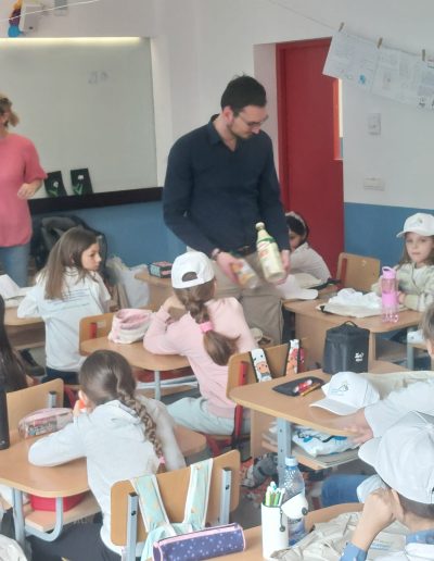 Elevii au adus de acasă deșeuri reciclabile precum PET-uri, hârtie și doze de aluminiu, pe care le-au predat furnizorului specializat de servicii de colectare, care le-a transportat către un centru de reciclare.
