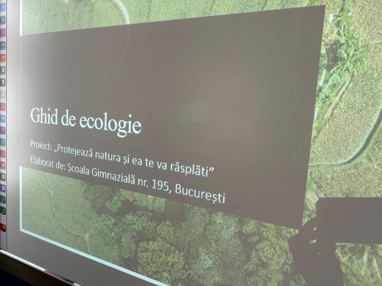În data de 31 martie 2025, la Școala Gimnazială nr. 195 din București, a avut loc prezentarea oficială a Ghidului de Protecție a Mediului, realizat de elevii clasei a VII-a D, în cadrul Activității A.5. din proiectul „Protejează natura și ea te va răsplăti”.